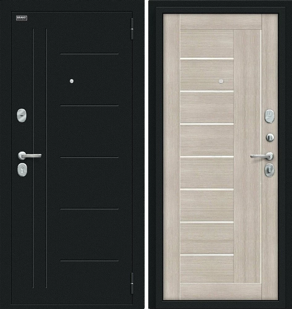 Надежная входная Дверь Браво Проф Букле черное/Cappuccino Veralinga премиум класса по цене 34 610 руб. Большая толщина стали защитит от проникновения в ваш дом, квартиру или коттедж. Используется очень качественная фурнитура: замки, цилиндры, ручки, защелки. Покрытие и отделка двери изготовлено под внимательным контролем производителя. Дверь имеет долгий срок службы и гарантию.