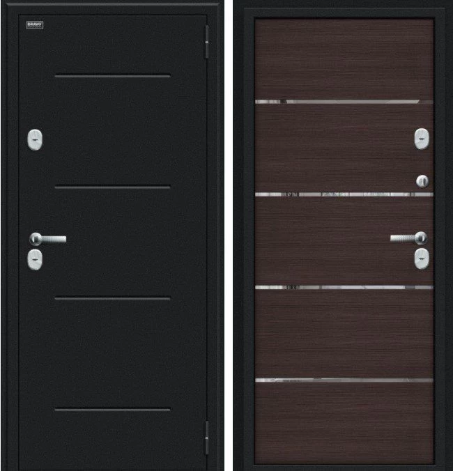 Надежная входная Дверь Браво Thermo Лайн Букле черное/Wenge Veralinga премиум класса по цене 49 510 руб. Большая толщина стали защитит от проникновения в ваш дом, квартиру или коттедж. Используется очень качественная фурнитура: замки, цилиндры, ручки, защелки. Покрытие и отделка двери изготовлено под внимательным контролем производителя. Дверь имеет долгий срок службы и гарантию.