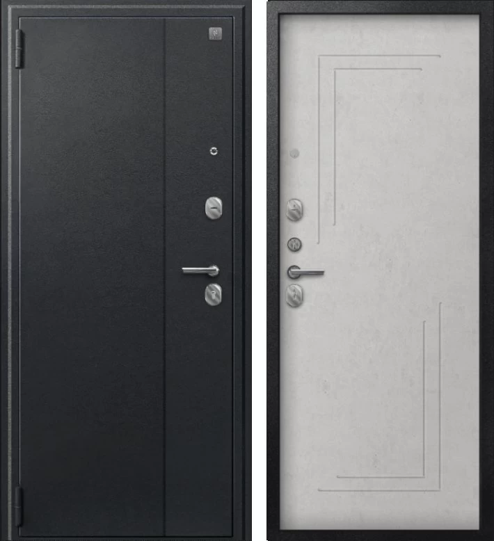 Надежная входная Дверь A-06 черный сатин - бетон светлый премиум класса по цене 31 490 руб. Большая толщина стали защитит от проникновения в ваш дом, квартиру или коттедж. Используется очень качественная фурнитура: замки, цилиндры, ручки, защелки. Покрытие и отделка двери изготовлено под внимательным контролем производителя. Дверь имеет долгий срок службы и гарантию.