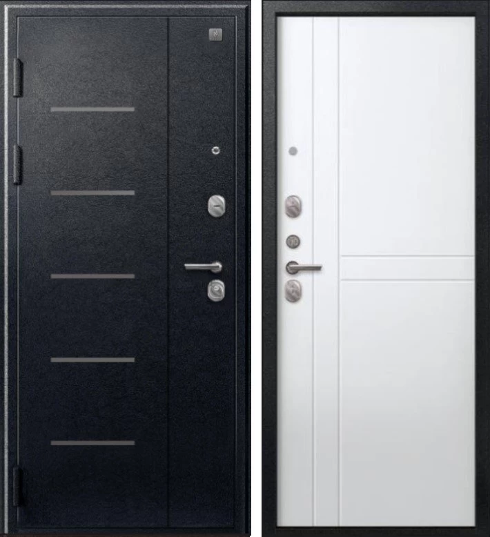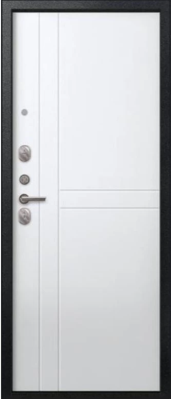 Надежная входная Дверь V-06 Черный муар - Белый премиум класса по цене 40 510 руб. Большая толщина стали защитит от проникновения в ваш дом, квартиру или коттедж. Используется очень качественная фурнитура: замки, цилиндры, ручки, защелки. Покрытие и отделка двери изготовлено под внимательным контролем производителя. Дверь имеет долгий срок службы и гарантию.